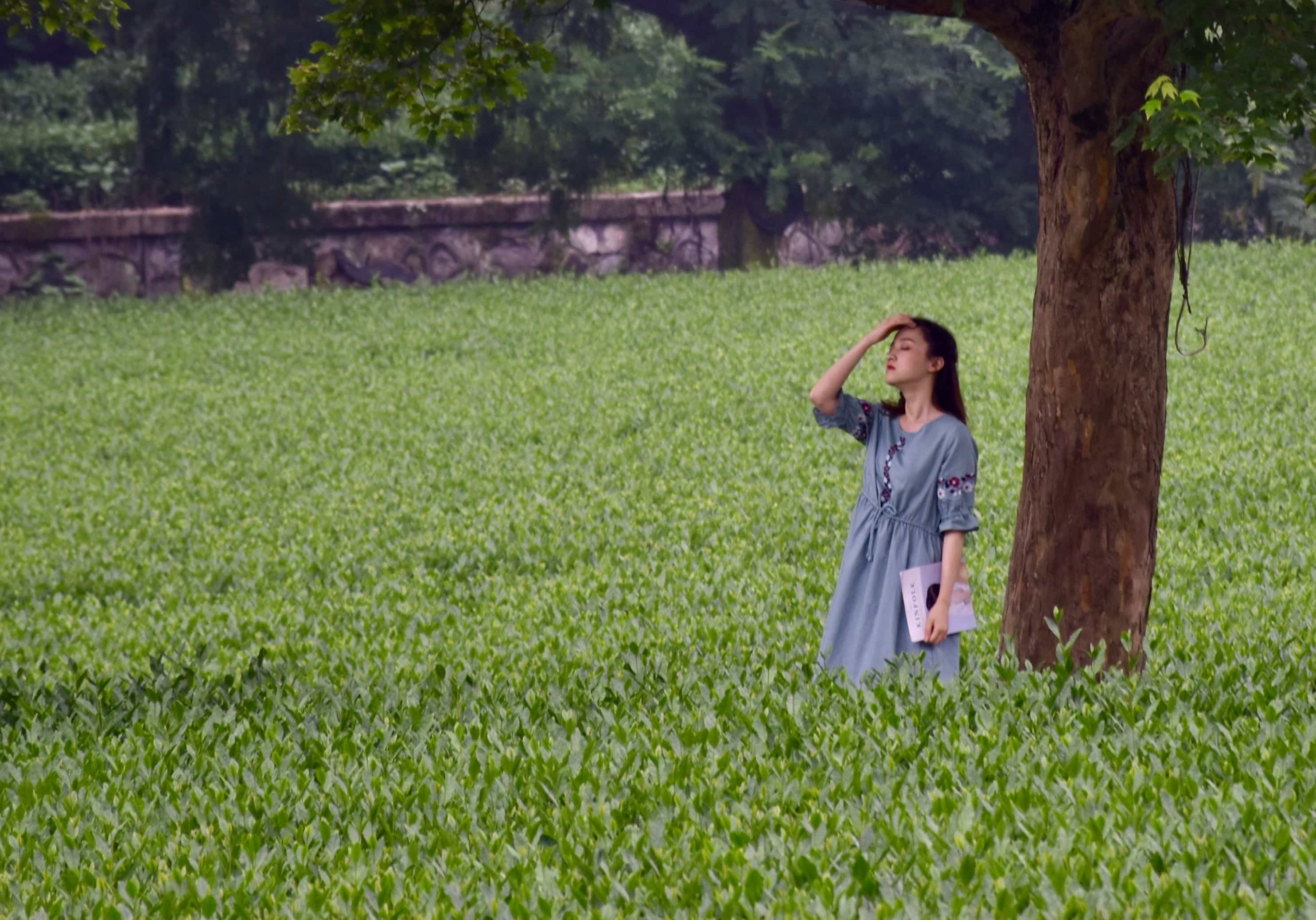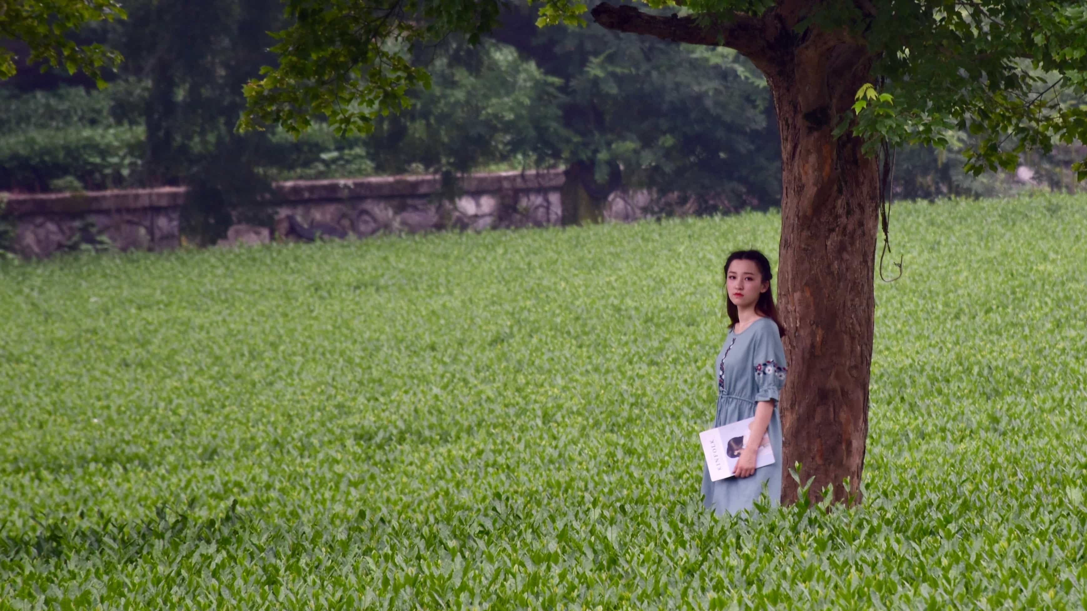 18年的高考昨天结束了,六一买下来人生中第一台单反,捣鼓了几天总算知道了一些技巧,于是今天特地到云栖竹径去拍摄并且爬山,在景点门口等车的时候,看到路旁的茶园有一位优雅漂亮并且眼神中有淡淡的忧郁的妹子,按动快门记录了这一刻,不过这个照片都是后期裁剪了的,因为旁边有一个摄影师在给拍照。